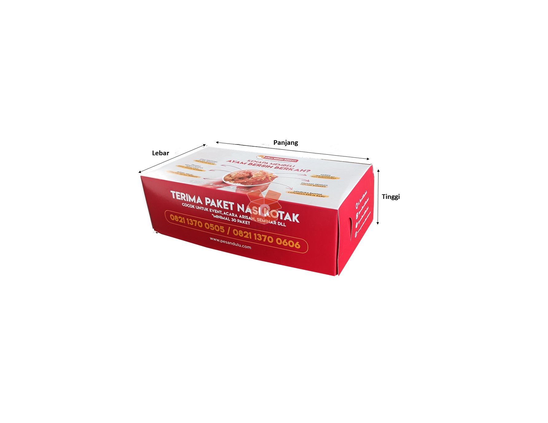 Box ayam goreng berbentuk kotak, biasa digunakan untuk box aneka makanan lainnya. Untuk makanan basah atau berminyak sebaiknya bagian dalam di Laminasi